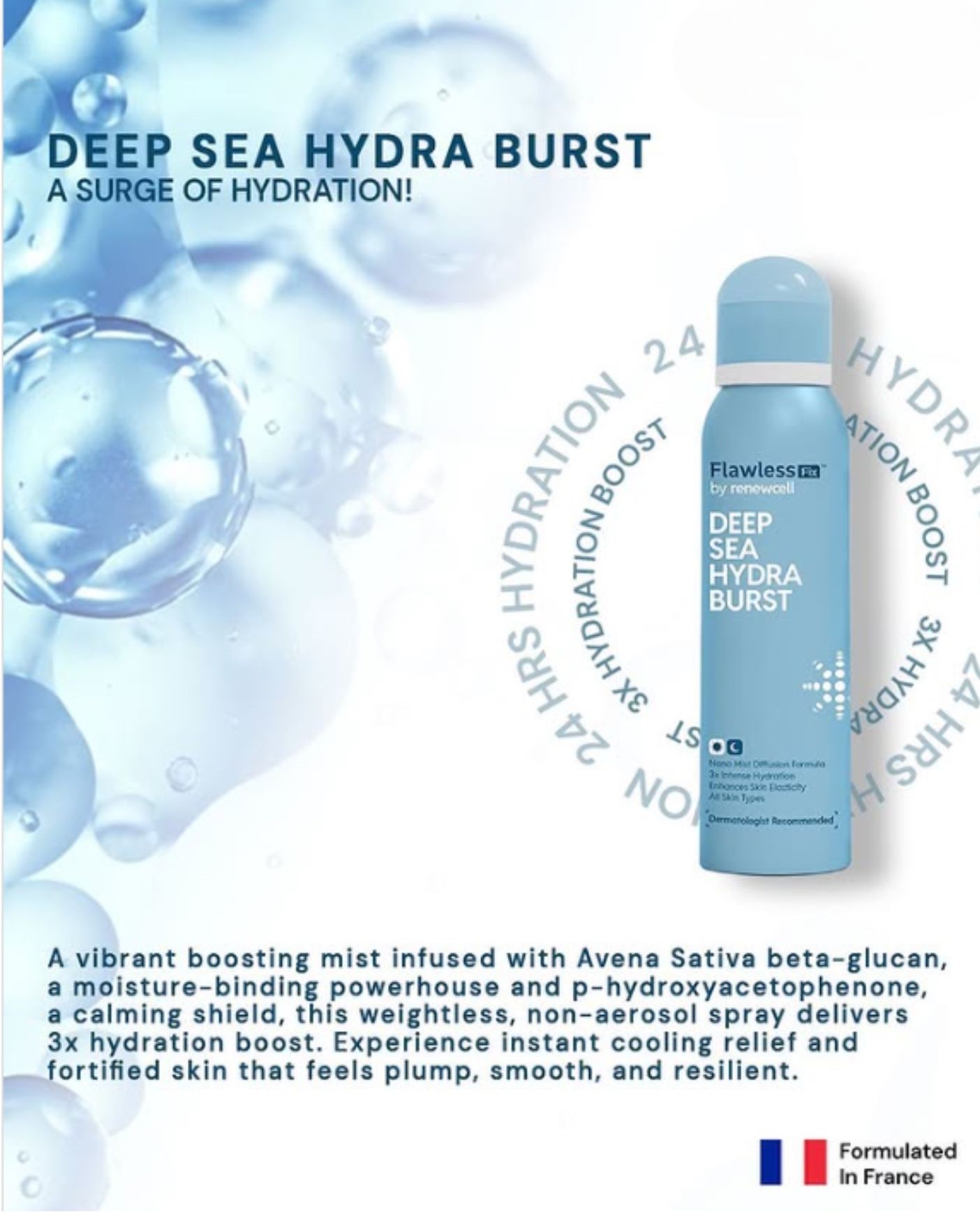 Deep Sea Hydra Burst is a refreshing, lightweight mist that combines the power of Avena sativa beta-glucan & aloe vera to deliver instant hydration and soothing relief.