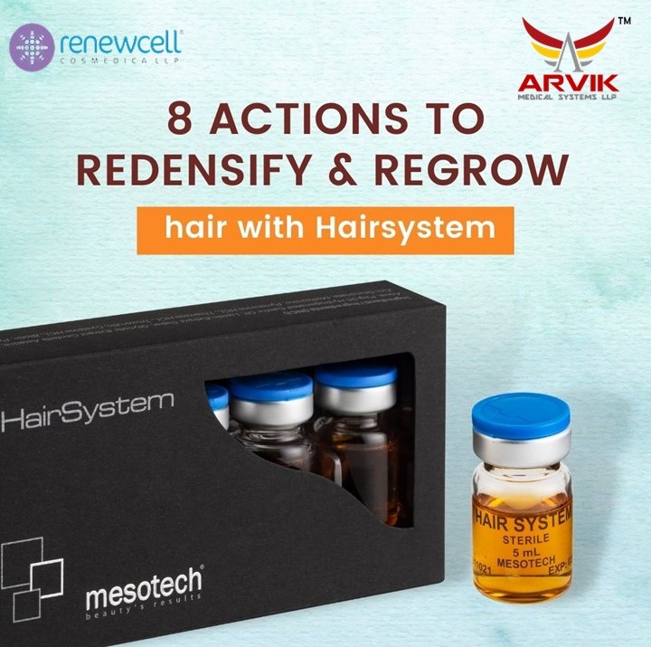 Hair system is a Meso-cocktail rich in active ingredients, vitamins, amino acids and minerals, formulated to restore effective micro-circulation of the scalp and revitalize hair follicles.