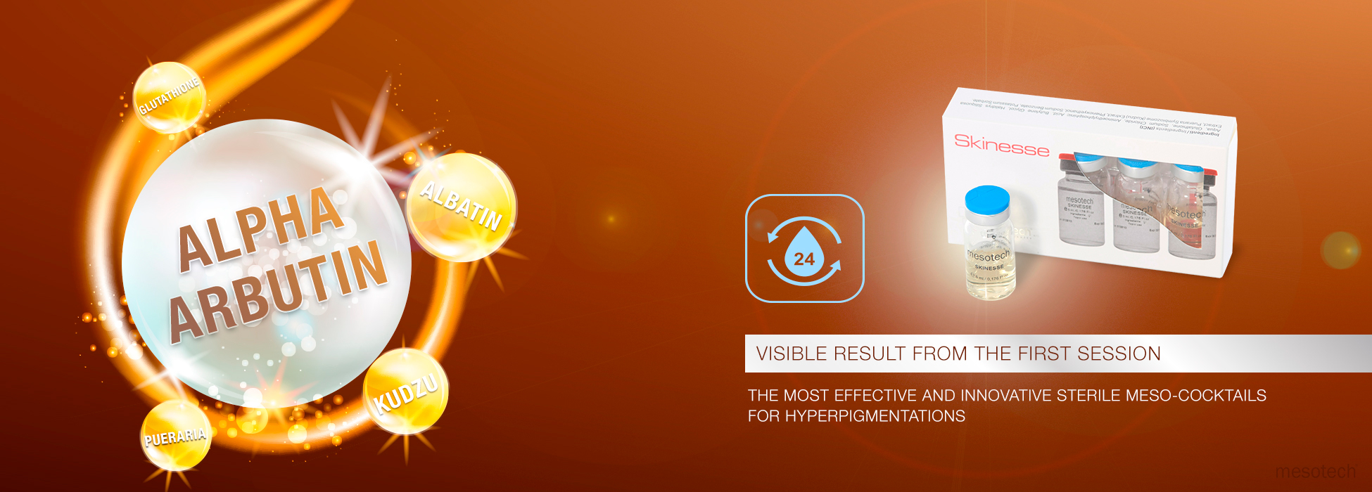 The Most Effective &Innovative Sterile Meso Cocktails For HYPERPIGMENTATION,melasma, sun damage, age spots, dyschromias, acne scars. Skinesse contains a complete formula ,thanks to its active ingredients that work in synergy.